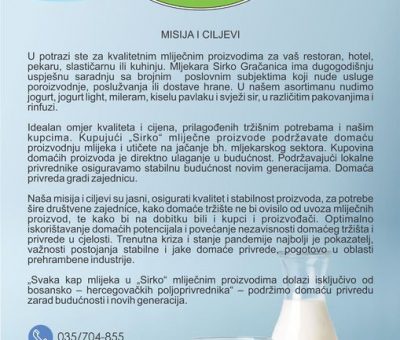 Read MorePoštovani kupci, dobrodošli na zvaničnu stranicu mljekare "Sirko" doo Gračanica. Mljekara "Sirko" doo Gračanica nudi svojim kupcima široku p