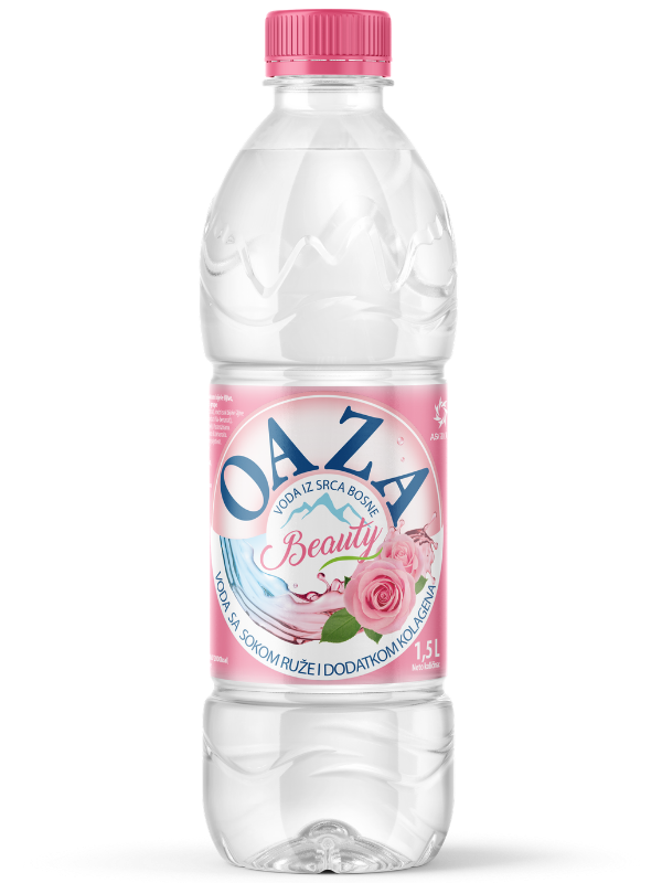 OAZA voda sa kolagenom i dodatkom okusa ruže je niskokalorično piće posebnog blagog okusa koje doprinosi elastičnosti kože i usporava njeno starenje.