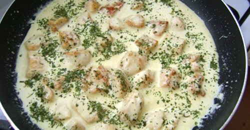 - Vratiti piletinu u sos još par minuta da se okusi sjedine, te dodati sitno nasjeckani peršun.