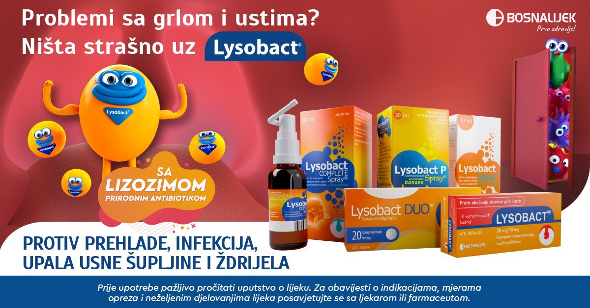 Na našim prostorima u regionu kao i šire, jedinoLysobactproizvodi sadrže lizozim. Lizozim je prirodna komponenta našeg organizma, svi se rađamo sa ovim po mnogo čemu posebnim enzimom. Prisustvo lizozima dokazano je u mnogim ćelijama: neutrofilnim leukocitima, retikuloendotelnim ćelijama, monocitima/ makrofagima, Kupferovim ćelijama jetre. Osim toga, prisutan je u tjelesnim tekućinama i sekretima (pljuvačka, suze, nosni sekret, majčino mlijeko, urin) i tkivima (jetra, hrskavica i koža).
