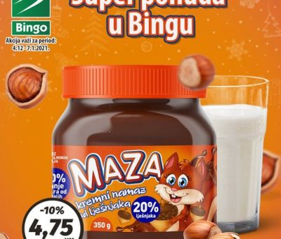 Read MoreU Bingo trgovinama na sniženju potražite krem namaz Maza. Maza je premium lješnjak namaz inovativnih i kvalitetnih sastojaka sa visokim udjelom lješn