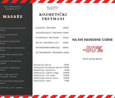Read MoreU susret 8.martu Vaš Wellnes&Spa centar Garden City odlučio je da Vas počasti nevjerovatnim popustima. U periodu od 01. do 08. marta už